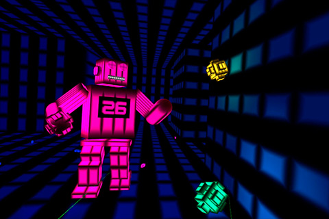 The robot Terminalo spawns glass balls like a maniac. Blast the balls to decrease Terminalo's energy. Once it reaches zero, Terminalo will start to pulsate, and now you can shoot him until he breaks apart. If you fail, Terminalo may eject a spiteful comment.